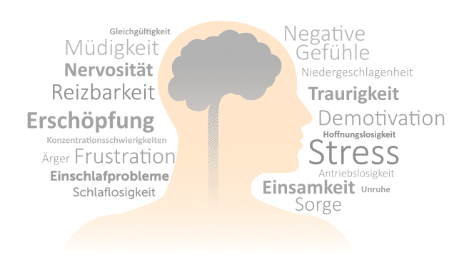 Die depressive Verstimmung, im Volksmund auch „Stimmungstief“ oder „seelisches Tief“ genannt, tritt in der Regel zusammen mit psychischen und körperlichen Beschwerden auf. Allerdings ist es nicht immer einfach, von Anfang an die Symptome zu erkennen. Somit kann sich eine depressive Verstimmung auch über einen längeren Zeitraum unbemerkt entwickeln.
